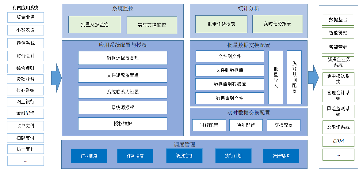 作為交換平臺的公共功能提供層,提供了系統管理、調度管理、日志管理、 報表管理、告警管理等模塊。